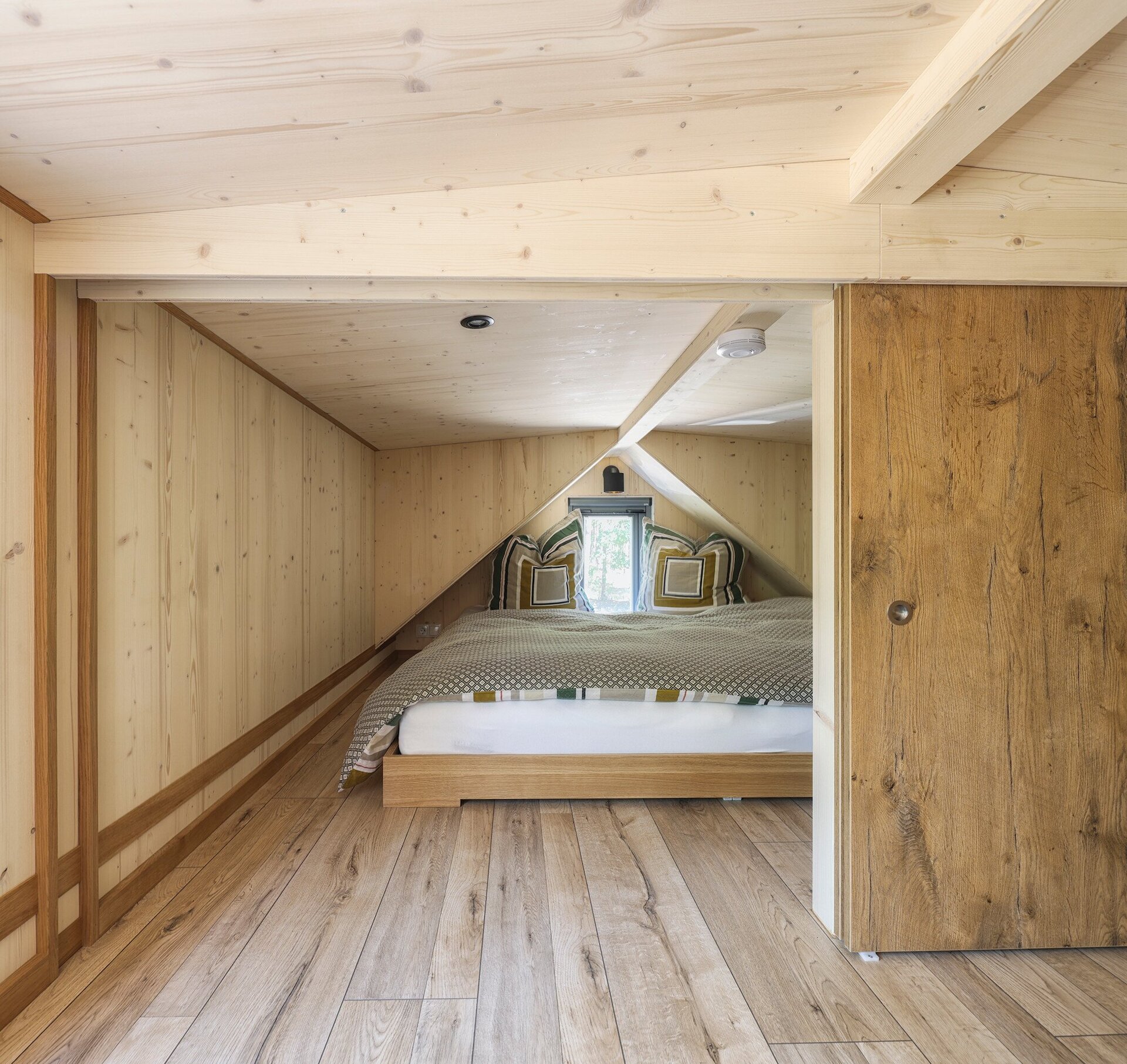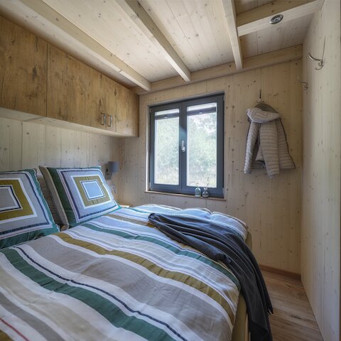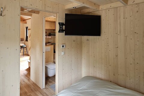 Unser Adlerhorst befindet sich verankert auf dem Waldboden. Das Haus ist vollständig möbliert, mit einer Klimaanlage für die warmen Tage ausgestattet und bietet viel Platz für bis zu 4 Personen.
